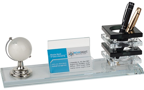 • מעמד קריסטל איכותי מסוגנן ומרשים, שישדרג כל שולחן מנהלים במשרד.