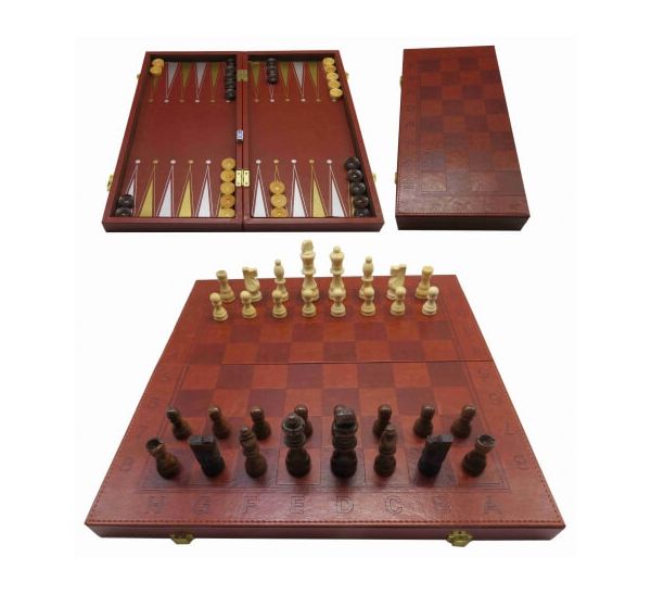 סט ששבש / שחמט / דמקה במארז דמוי עור - גדול