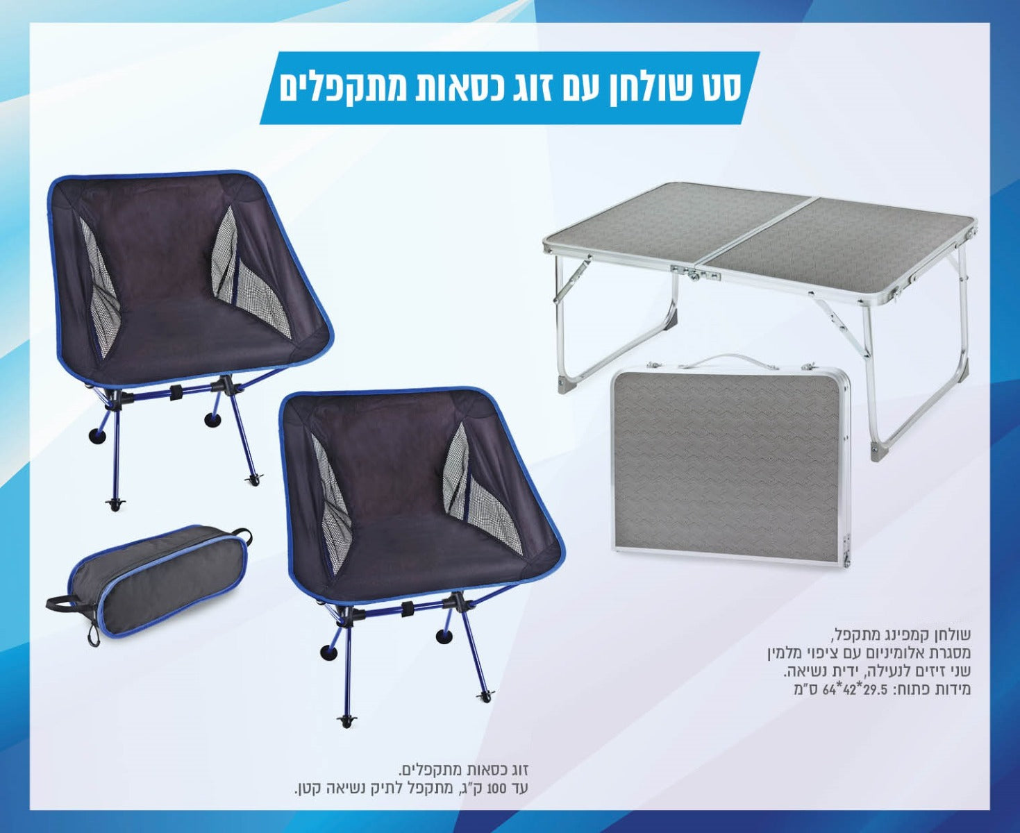 סט שולחן עם זוג כסאות מתקפלים