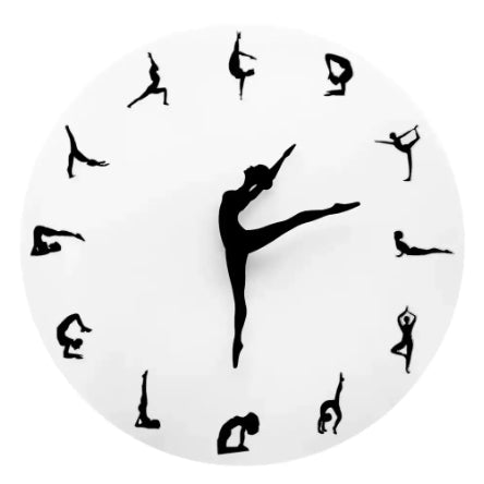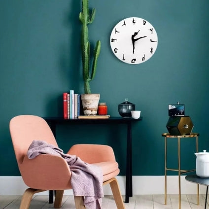• שעון קיר מקורי עם 12 תנועות יוגה קלאסיות (במקום ספרות).