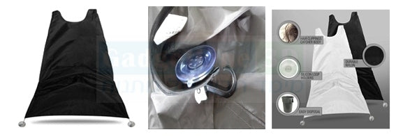 הסינר מצויד בתפסי ואקום איתם ניתן לחבר אותו למראה מולכם