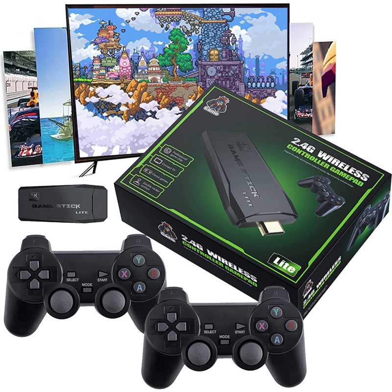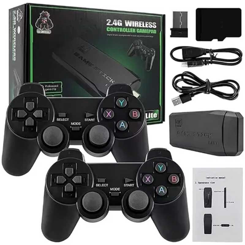 מידע מורחב לקונסולת משחקי מחשב כולל זוג שלטים אלחוטיים