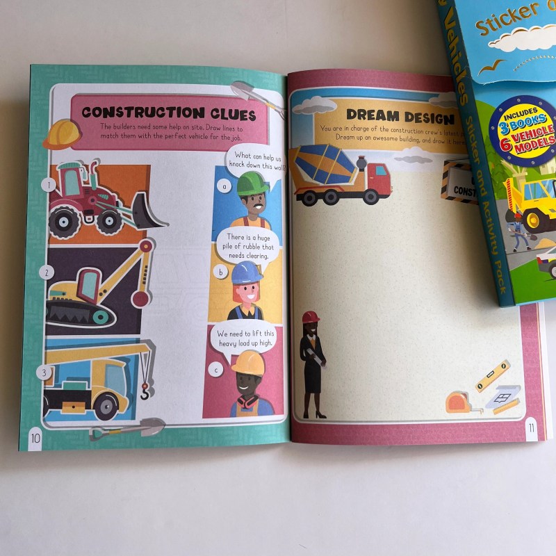 • המארז כולל 3 חוברות עם רכבי עבודה שונים ויותר מ-1000 מדבקות.