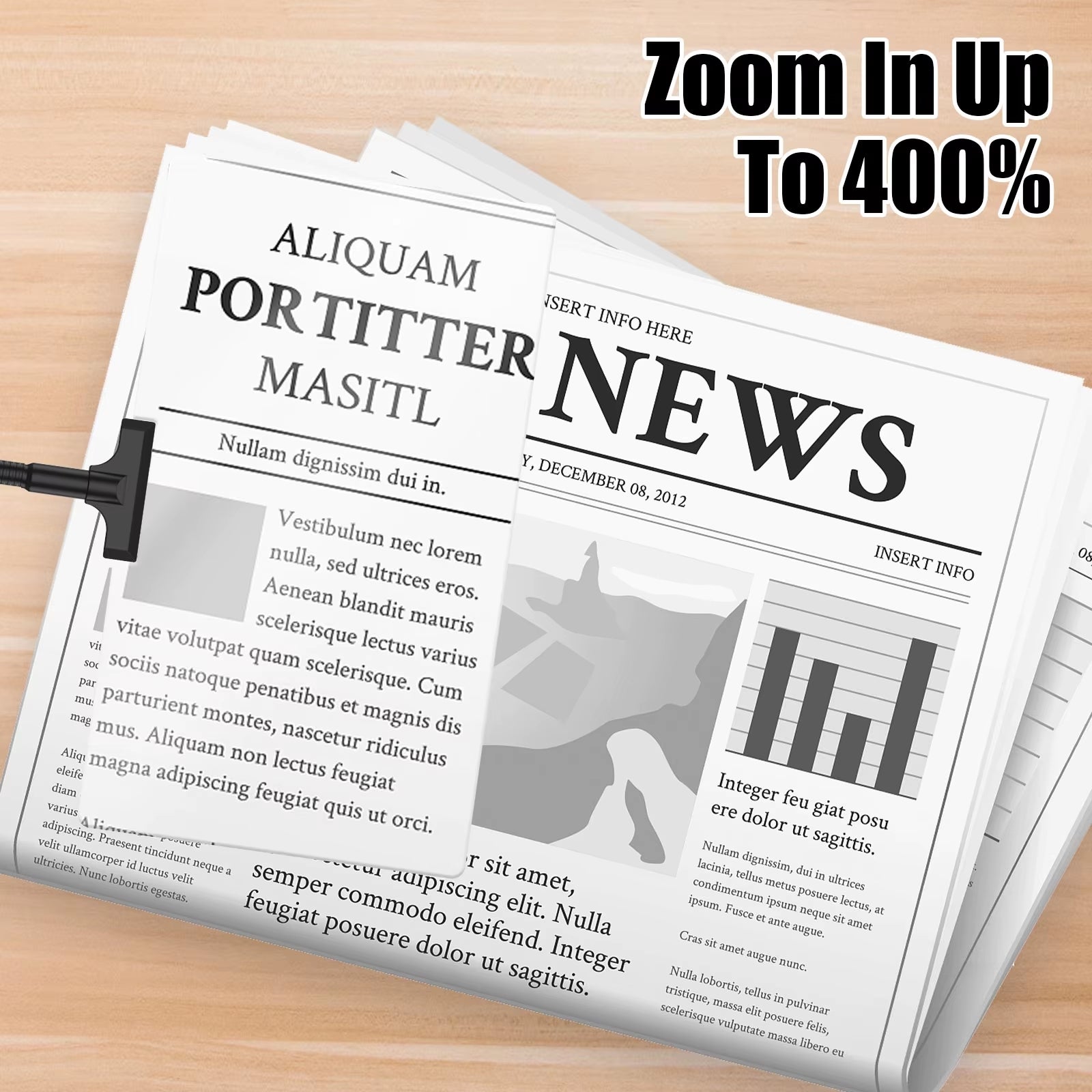 • הגדלה עוצמתית של עד 400% לקריאה נוחה יותר.