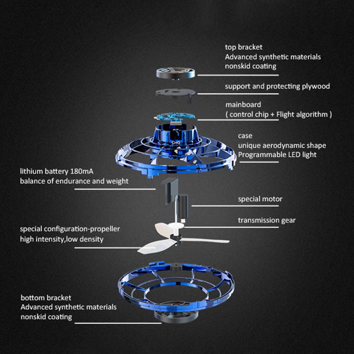 • הוא מיועד לשימוש פנים וחוץ, עם מצב טיסה חלק ואפקט בומרנג.