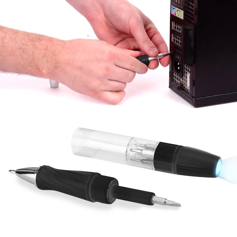 פנס משולב עם עט כדורי וסט מברגים | עט-פנס איכותי