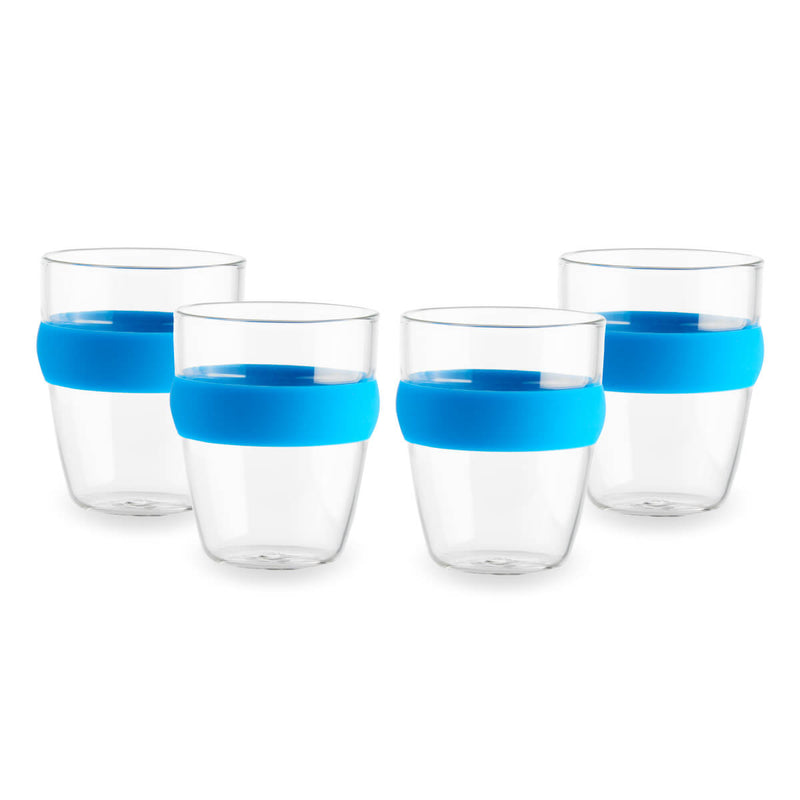 • 4 כוסות זכוכית עם חבק סיליקון צבעוני