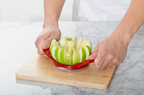 מניחים את הכלי על התפוח ולוחצים אותו מטה