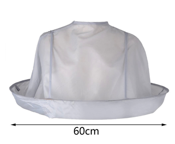 • סינר עם תחתית קעורה לאיסוף השיער בזמן תספורת או גילוח