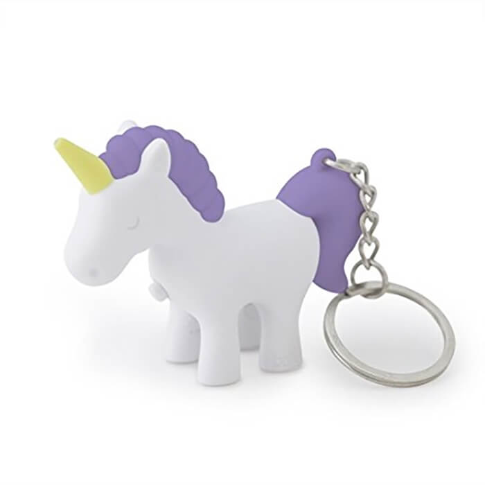 • מחזיק מפתחות מדליק בדמות של חד קרן עם רעמה וזנב בצבעים שונים