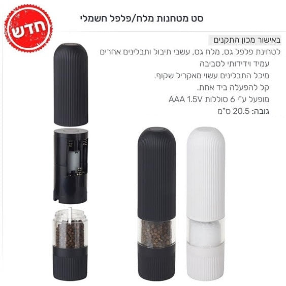 סט מטחנות מלח/פלפל חשמלי