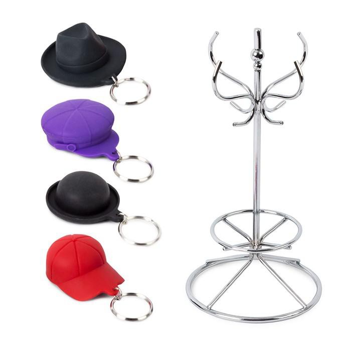 מארז 4 מחזיקי מפתחות בעיצוב כובעים כולל מתלה !Chapeau