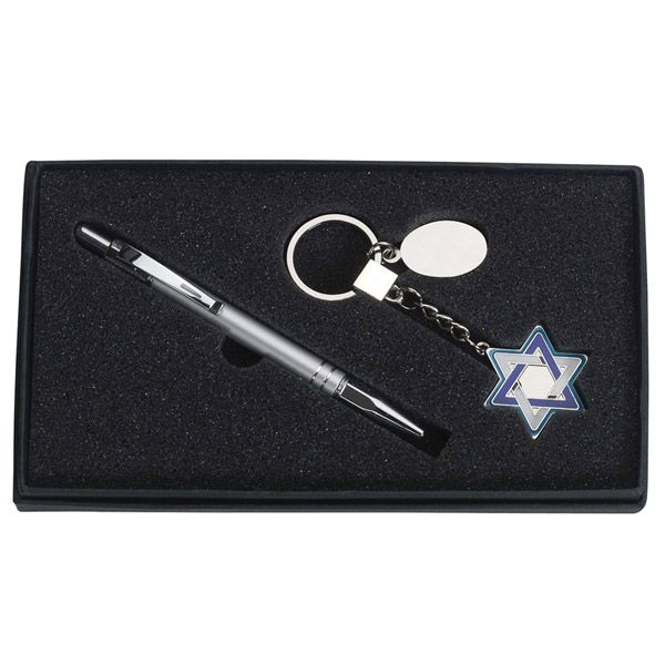 ערכת מתנה - עט ומחזיק מפתחות עם מגן דוד