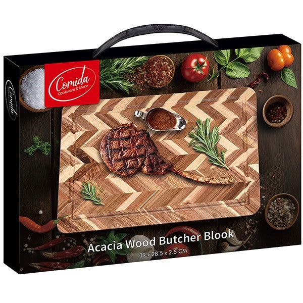 • הדגם החדש "Comida" לוח חיתוך עץ בוצ'ר מהודר ACACIA.
