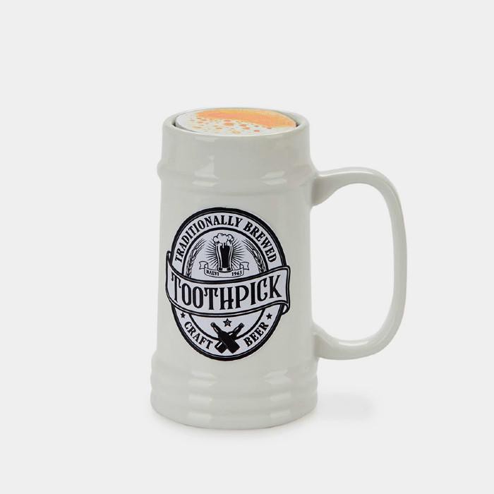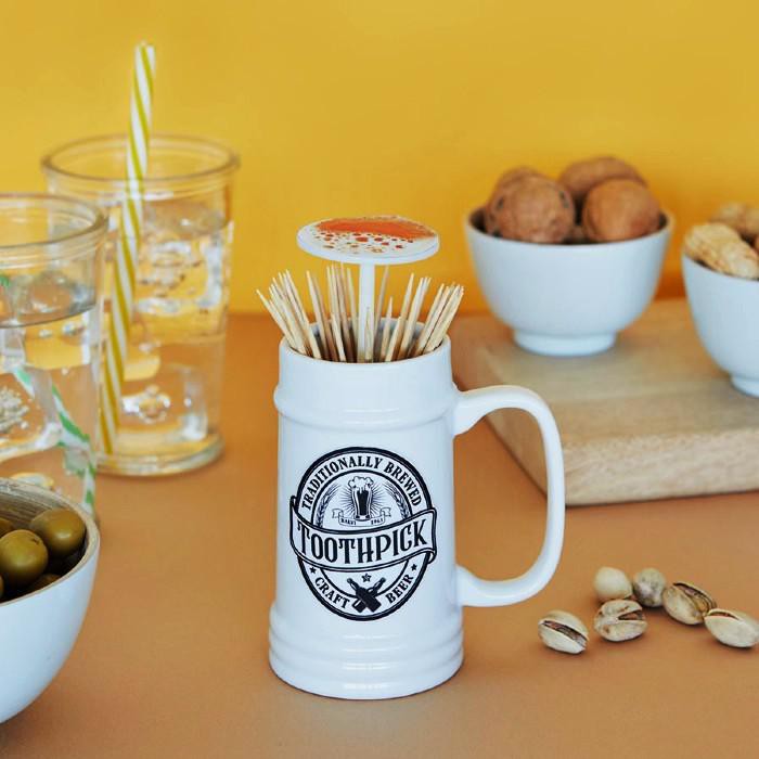 • מתקן קיסמי שיניים ייחודי בדמות כוס בירה מסורתית העשויה קרמיקה.