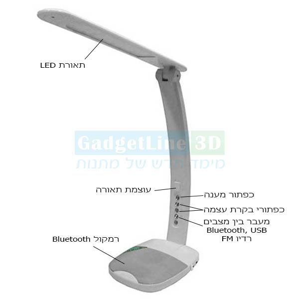 מנורת שולחן עם רמקול בלוטוס רדיו ונגן