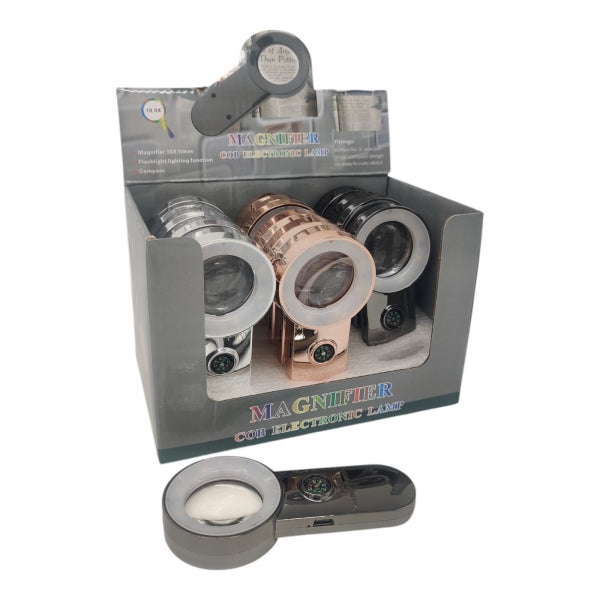 זכוכית מגדלת נטענת עם תאורה ומצפן