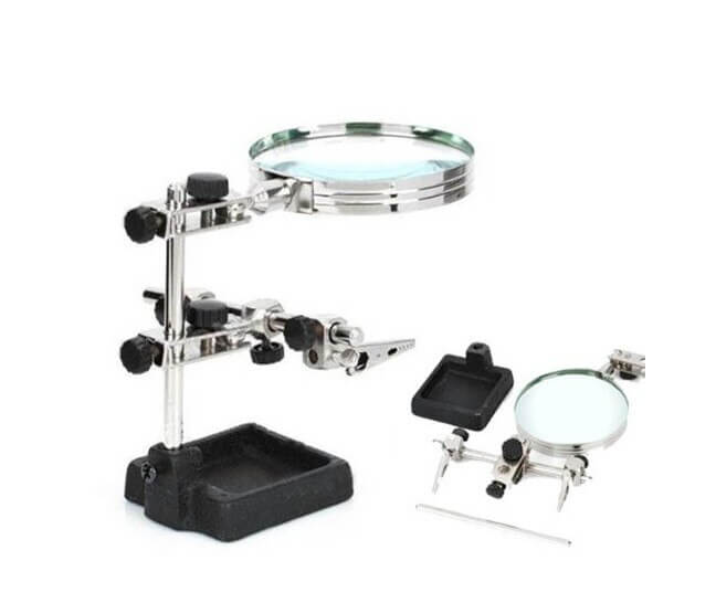 זכוכית מגדלת עם מעמד שולחני ומצבטים