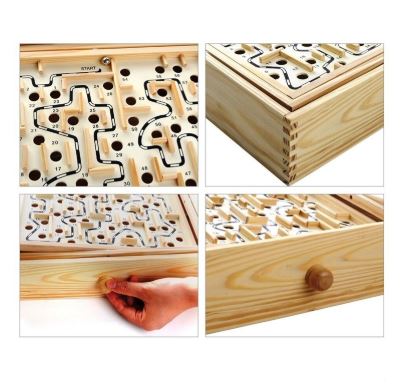 • משחק מבוך איכותי עשוי מעץ עם 2 כדורים ממתכת