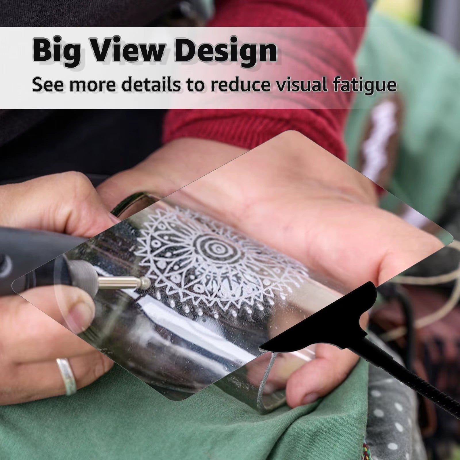 • זכוכית מגדלת בעוצמת הגדלה של 5x לקריאה נוחה במיוחד, עבודת יד, אומנות ועוד.