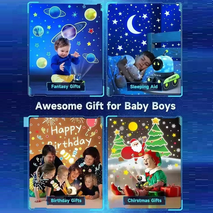הכירו את הרובוט שיכניס קסם, מוזיקה ואור לכל חדר בין אם לדר תינוקות או ילדים. הרובוט שלנו משלב כמה פונקציות כגון מנורת לילה, מקרן צורות ורמקול בלוטוס איכותי - אביזר מושלם לחדר הילדים!
