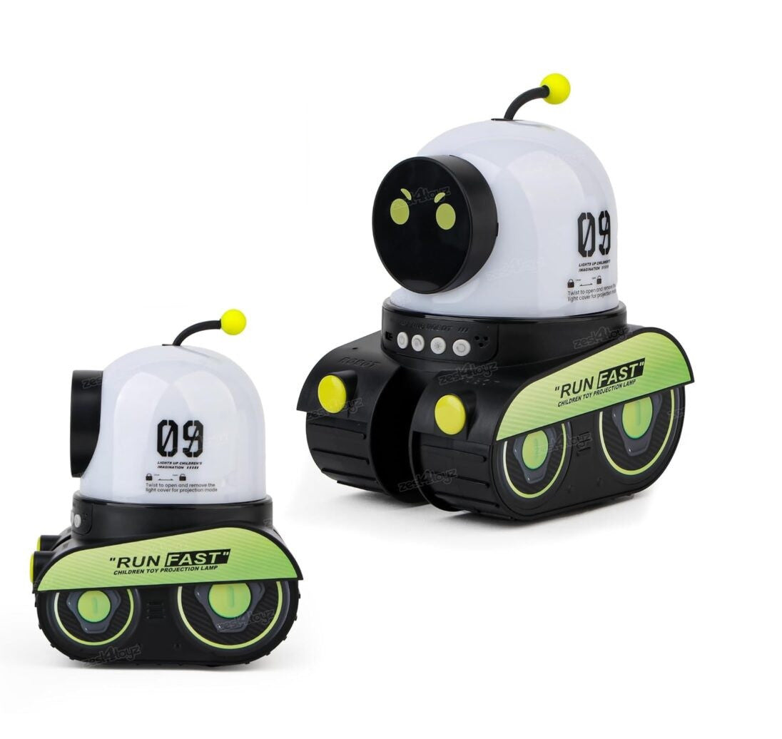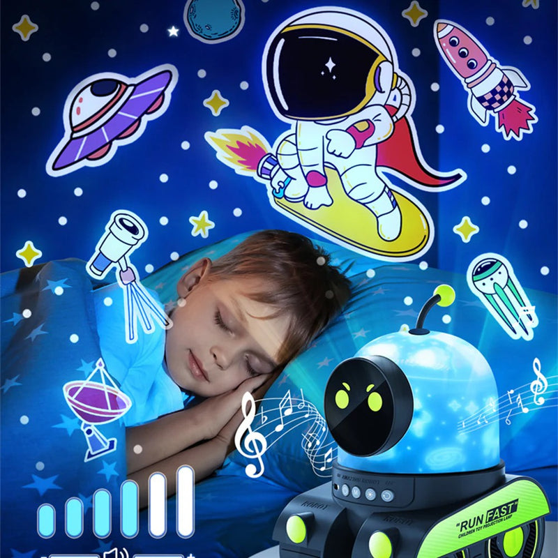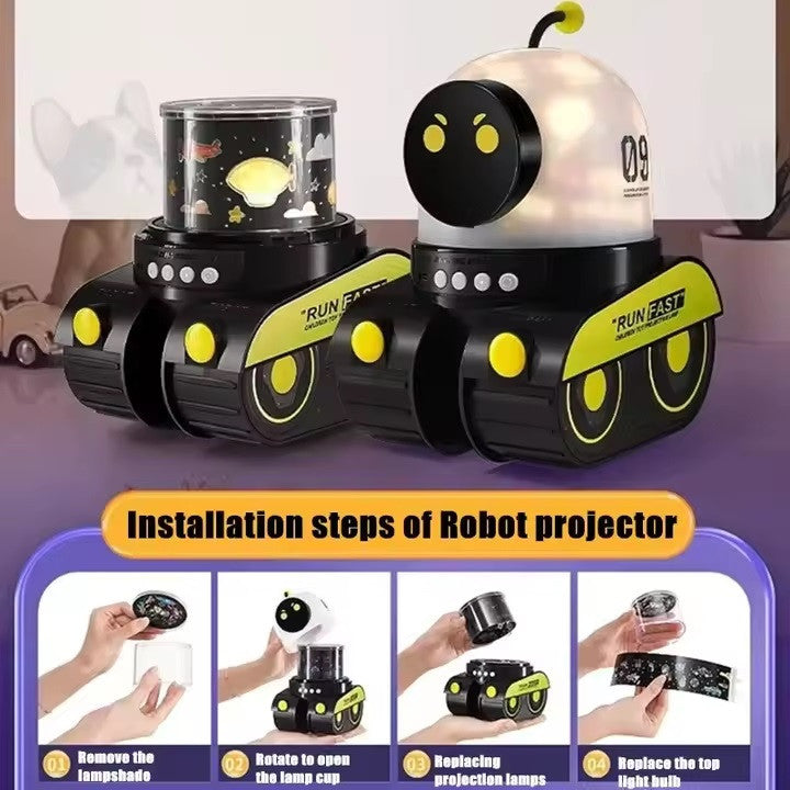 רובוט מקרן צורות עם רמקול בלוטוס ומנורת לילה