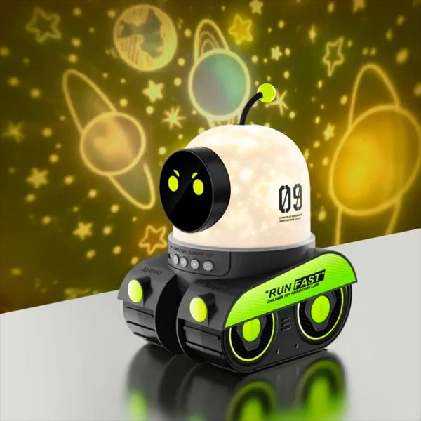רובוט מקרן צורות נטען עם רמקול בלוטוס ומנורת לילה | במלאי באתר ובחנות