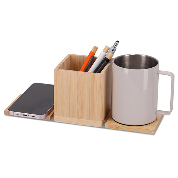 מטען אלחוטי 15W מתקפל עם פלטה לחימום קפה וכוס לעטים
