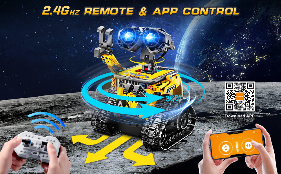 • משחק הרכבה רובוטי הנדסי 3 ב-1 הכולל שלט רחוק להפעלה כיפית ותכנות בטלפון הנייד!