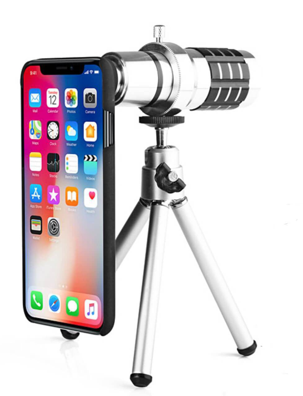 • העדשה הטלסקופית מתחברת אל הסמארטפון באמצעות כיסוי ייעודי ומאפשרת הצבתו על חצובה קומפקטית
