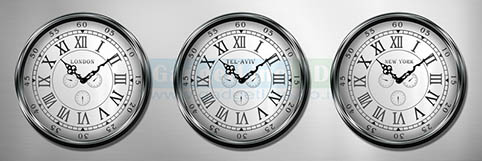 שלושה שעונים אנלוגיים גדולים ל-3 לוקיישנים בינלאומיים
