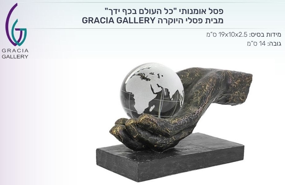 פסל אומנותי עולם בכף ידך מבית GRACIA GALLERY | במלאי באתר ובחנות!