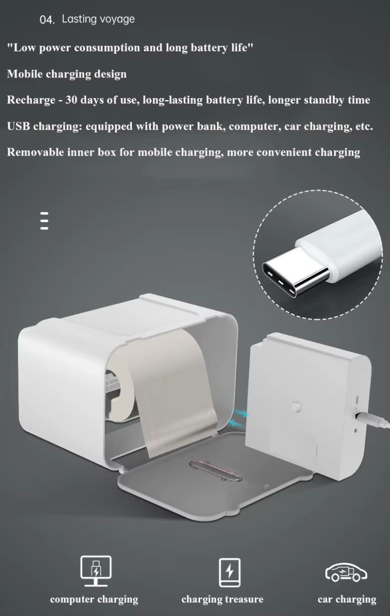 • מתקן נייר טואלט אוטומטי מופעל בחיישן מרחק Induction Toilet Paper Holder.
