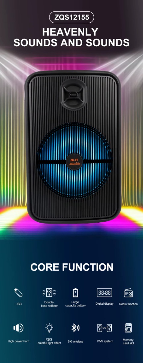 • דגם ZQS-12155 החדש כולל תאורת לד RGB צבעונית.
