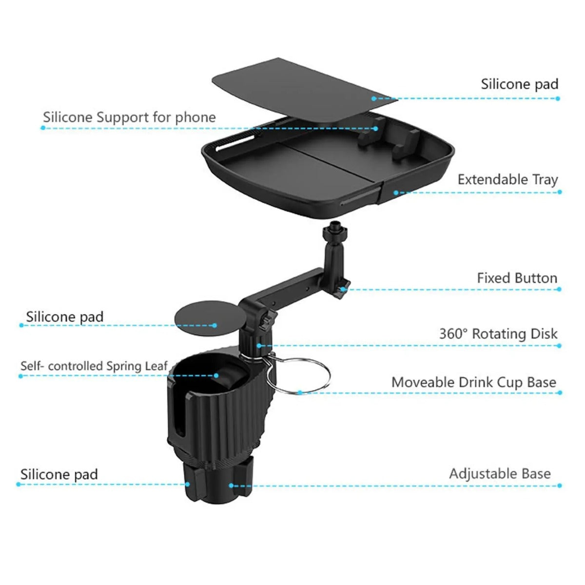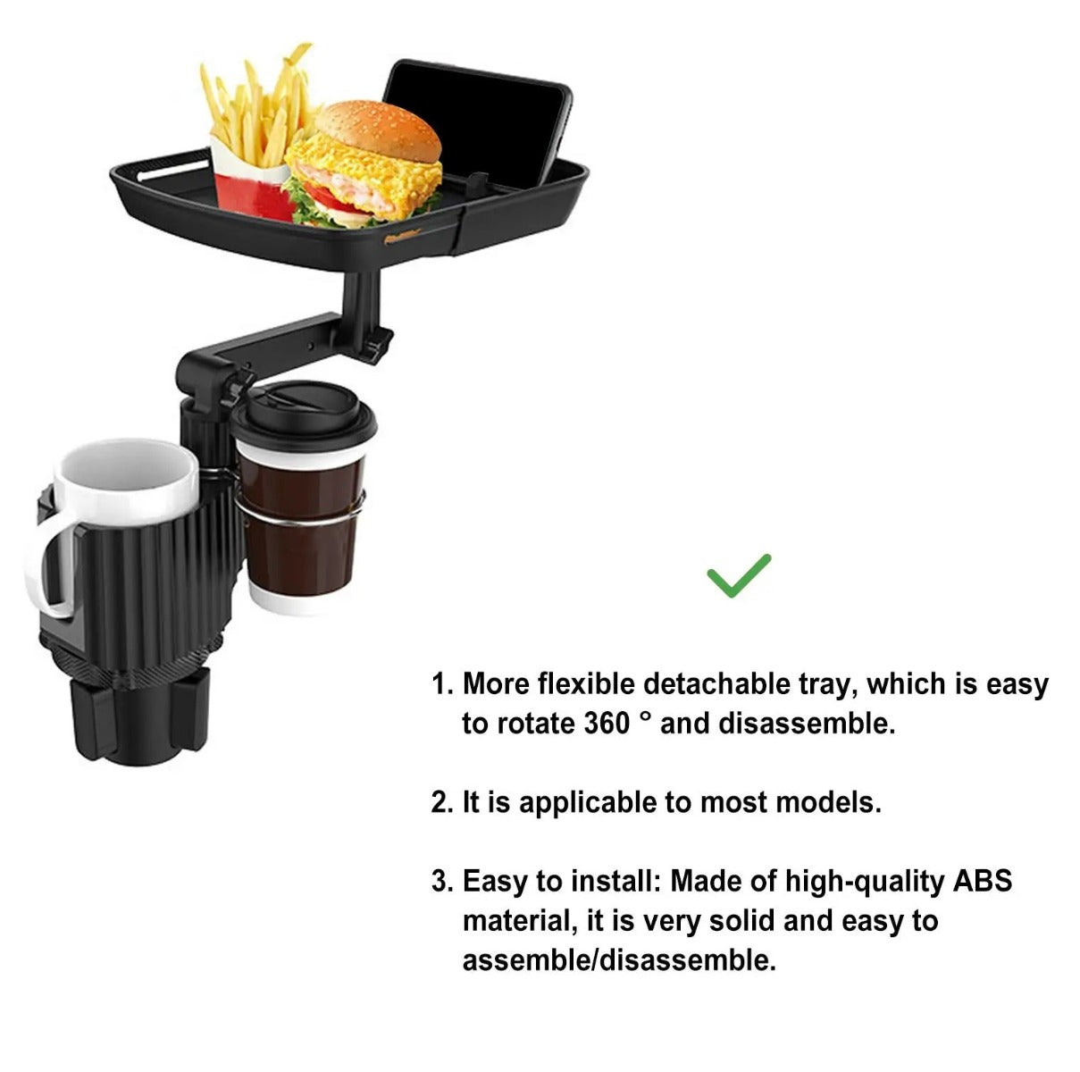 • מוצר מהפכני 2 ב-1 המתאים לכל רכב, כולל מעמד ל-2 כוסות ומגש אוכל.