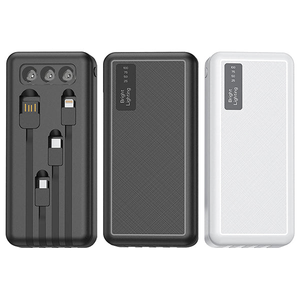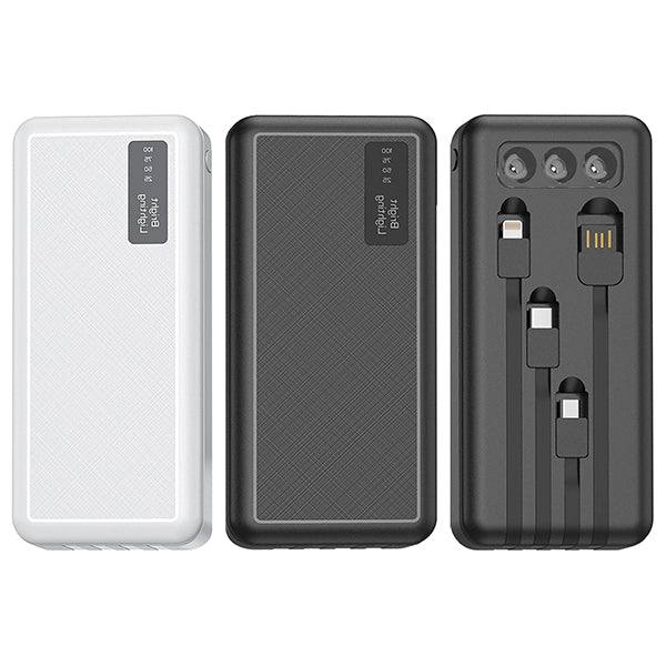לא נתקעים יותר ללא סוללה! כן, עם הפאוור הבנק החדש המשמש כסוללת גיבוי חזקה של 20,000mAh, תיהנו ממטען נייד המאפשר טעינה מהירה והכולל 4 כבלים מובנים, צג דיגיטלי ופנס מובנה!