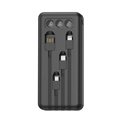 • טעינה מהירה עם 4 כבלים מובנים, צג דיגיטלי ופנס.
