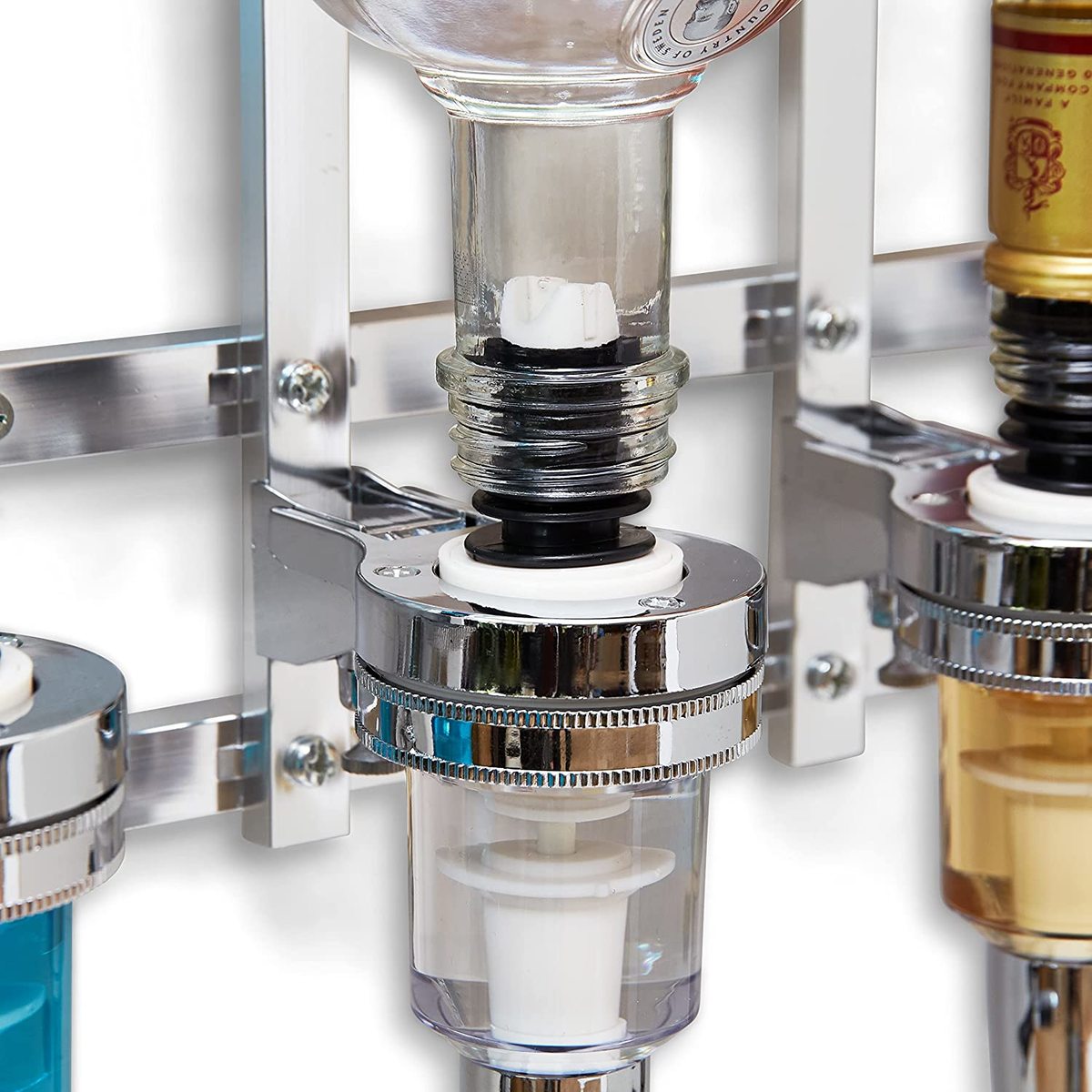 • שטח הבקבוק המותקן מתכוונן ובעל יכולת לנוע מעלה ומטה כדי להתאים לבקבוקים גבוהים במיוחד.