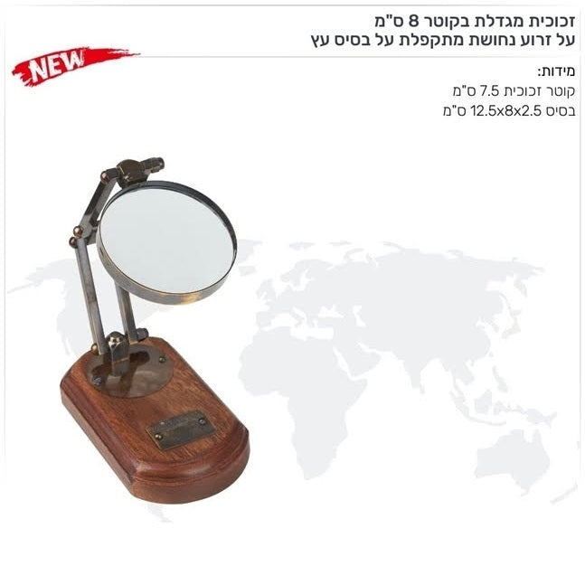 מחפשים מתנה מקורית ואיכותית ליקרים לכם? הכירו את זכוכית המגדלת החדשה המעוצבת בסגנון עתיק! זכוכית מגדלת יפהפהיה בסגנון רטרו, הכולל זרוע נחושת מתקפלת והמונחת על בסיס עץ מסוגנן ויציב.