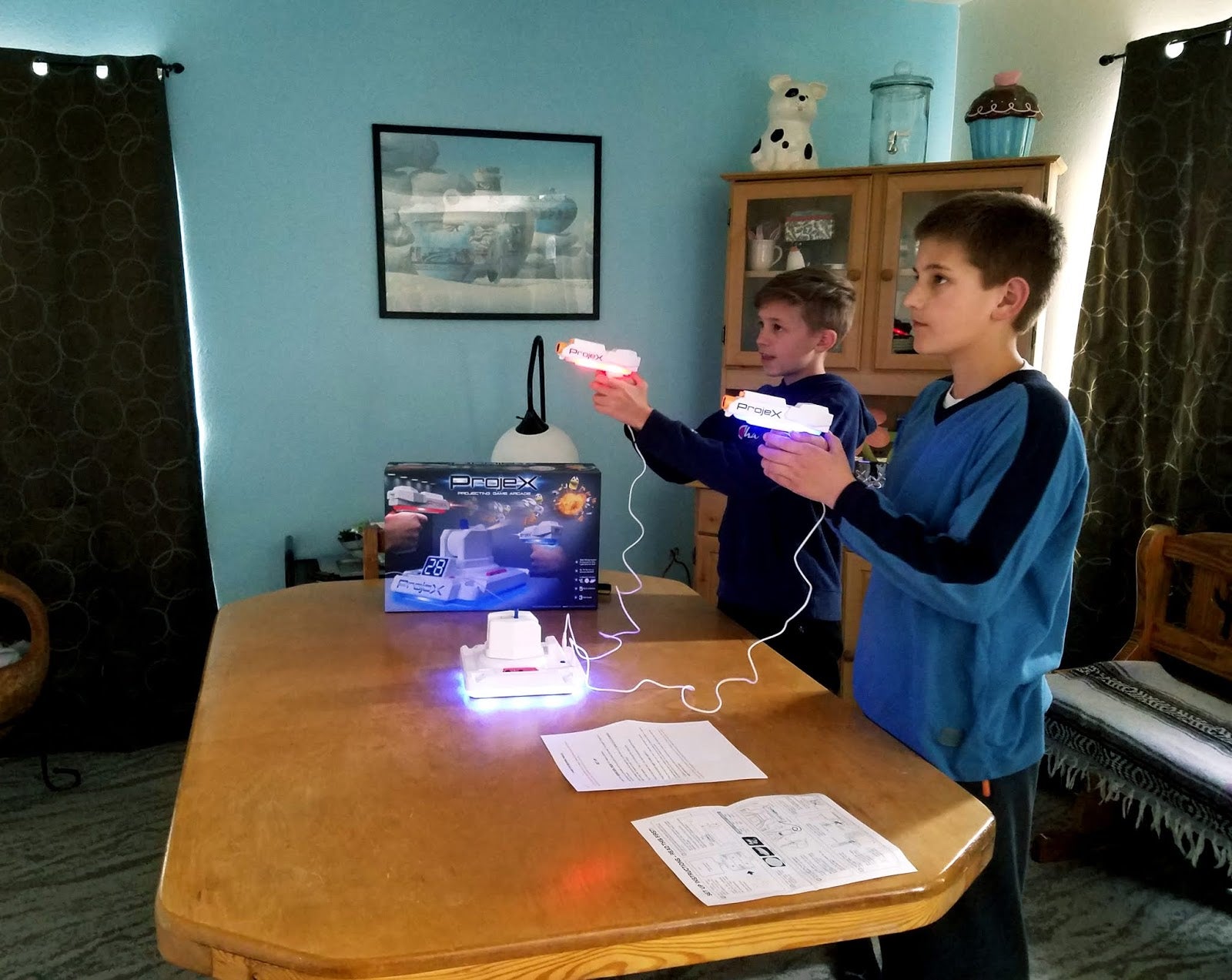 • מכונת ארקייד המקרינה מטרות נעות שתוכלו לירות עם לייזר עליהם על כל קיר בצבע בהיר.