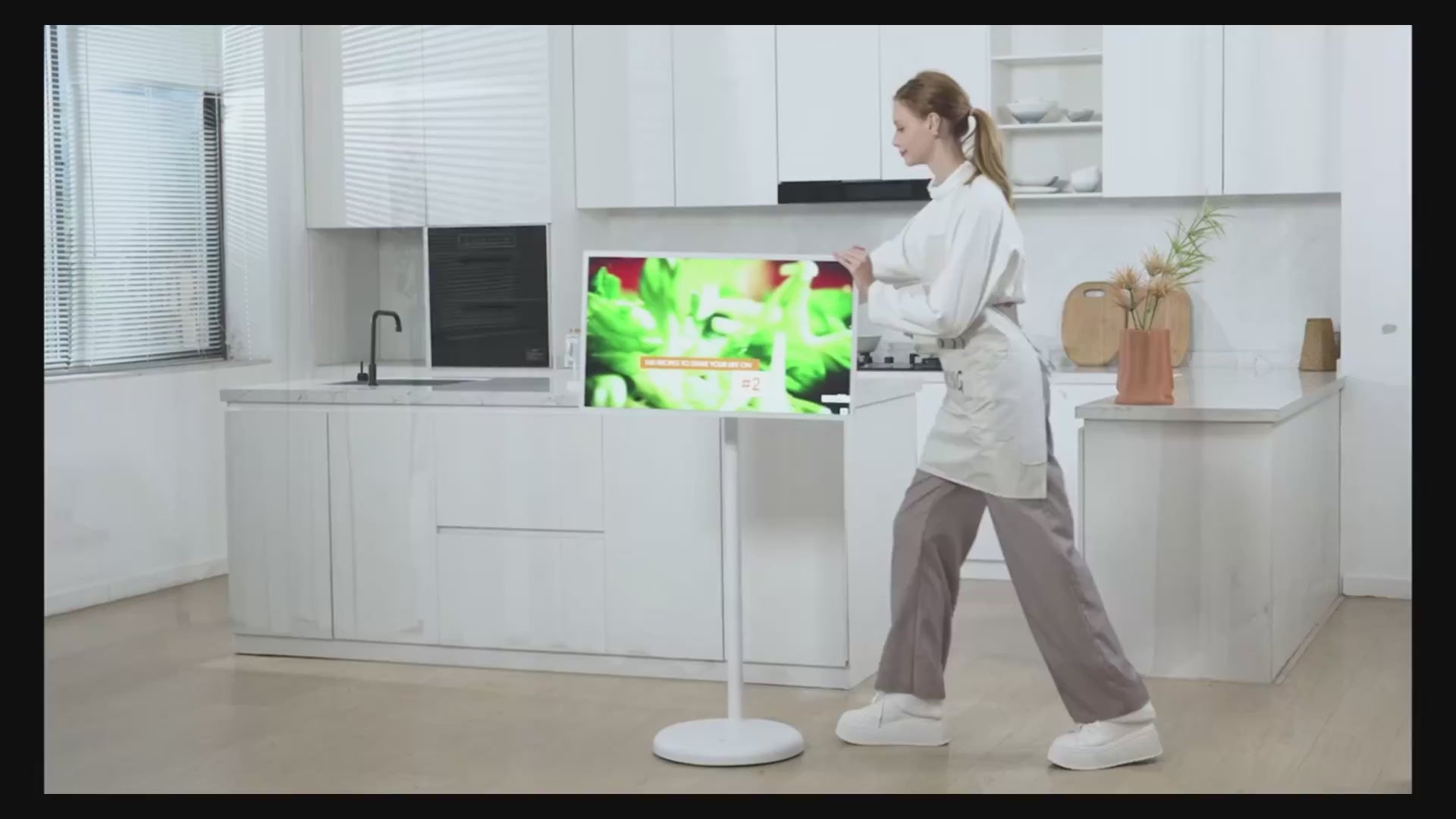 • מסך חכם בגודל אידאלי של 32 אינץ' על גלגלים לניידות מושלמת בבית או במשרד.