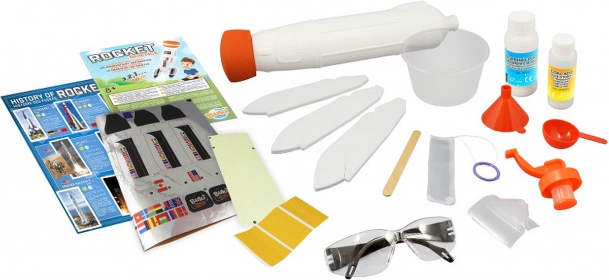 ילדכם הסקרן משתעמם בשעות הפנאי? הרכיבו עם ילדכם טיל לשיגור מוצלח ובטוח. ערבבו את החומצה הציטרית והסודיום ביקרבונט המסופקים בערכה וצפו בתגובה הכימית הגורמת לגז להתפרץ ולשגר את הטיל לגובה של עד 15 מטרים! משחק הרכבה מדעי איכותי במיוחד מבית בוקי צרפת, מושלם לילדים החולמים על השמיים והכוכבים.