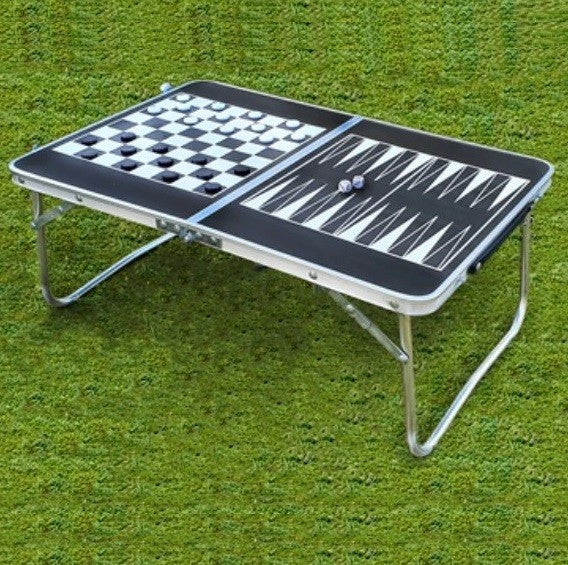 שולחן קמפינג נייד מתקפל עם לוח וכלי ששבש דמקה שחמט