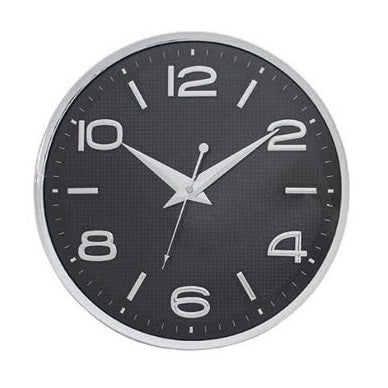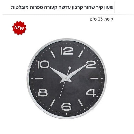 שעון קיר שחור קרבון 33 ס"מ עדשה קעורה ספרות מובלטות