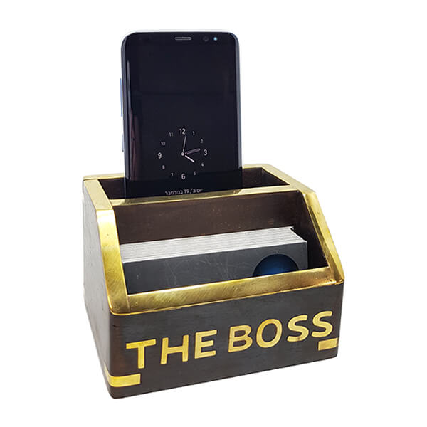 מעמד לכרטיסי ביקור עץ ונחושת ומעמד לסמארטפון THE BOSS