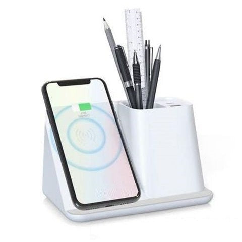 אם גם שולחן העבודה שלך בבלאגן זהו ללא ספק הפתרון המתאים לך: מעמד משולב לטעינת ניידים אלחוטית ומעמד לעטים, פשוט לארגן את שולחן העבודה במשרד או בבית!