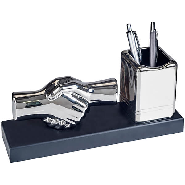 מעמד שולחני עם כוס לעטים - "יד לוחצת יד"