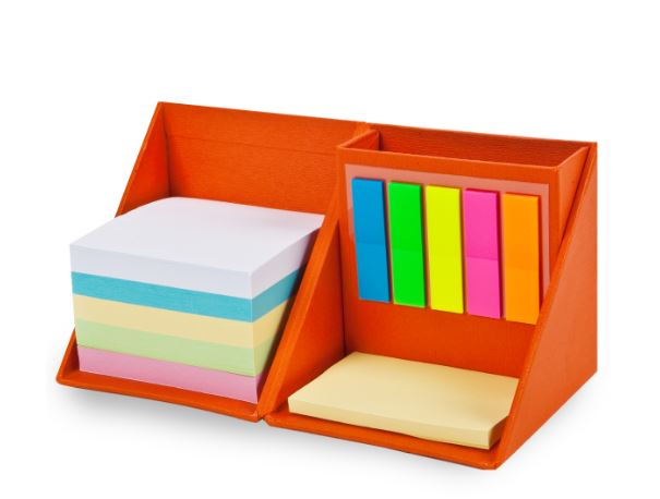 • כוללת נייר ממו דביק, דגלונים ומקום לעטים