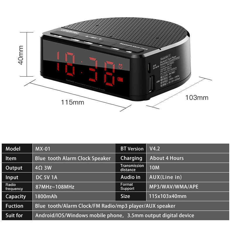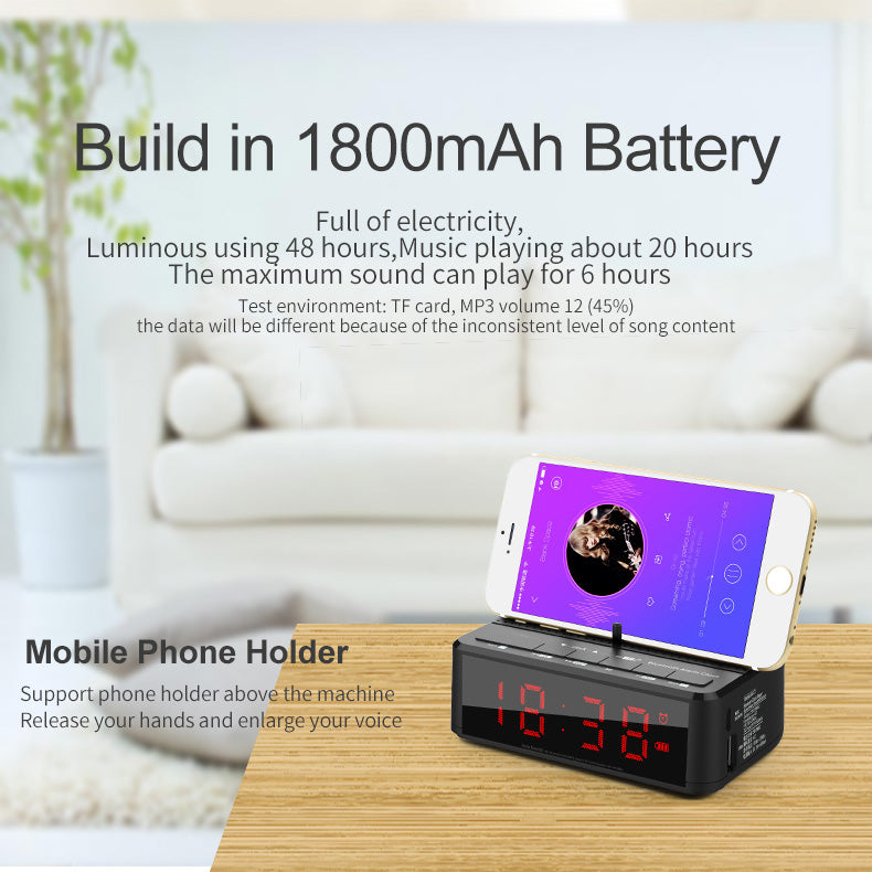 שעון מעורר דיגיטלי עם רדיו ורמקול בלותוס