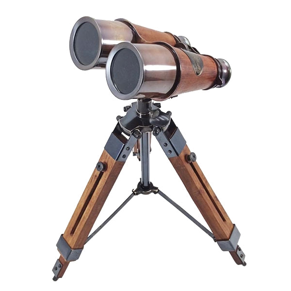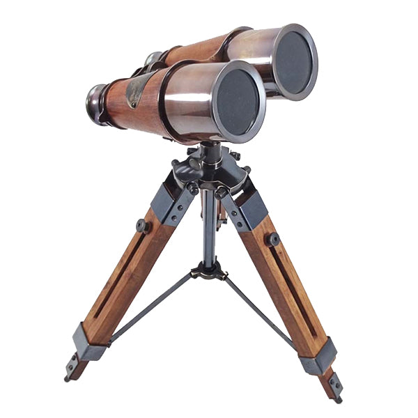 משקפת עץ ונחושת כפולה על חצובת טריפוד עץ